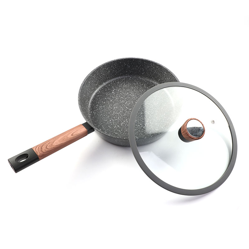 Forged Aluminum heavy duty  deep fry pan with silicon glass lid
